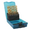 19pcs HSS twist drill set DIN338 HSS fully ground drill special fully ground drills,high quality. size: 1.5,2,2.5,3,3.5,4,4.5,5,5.5,6,6.5,7,7.5,8,8.5,9,9.5,10mm presentation: roll forged, fully ground,fully ground TiN coated,fully ground cobalt packg:plastic box 118° or 135° Split point is self-centering and reduces thrust. Heavy duty operations in stainless steel, titanium, inconel, and other hard metals.